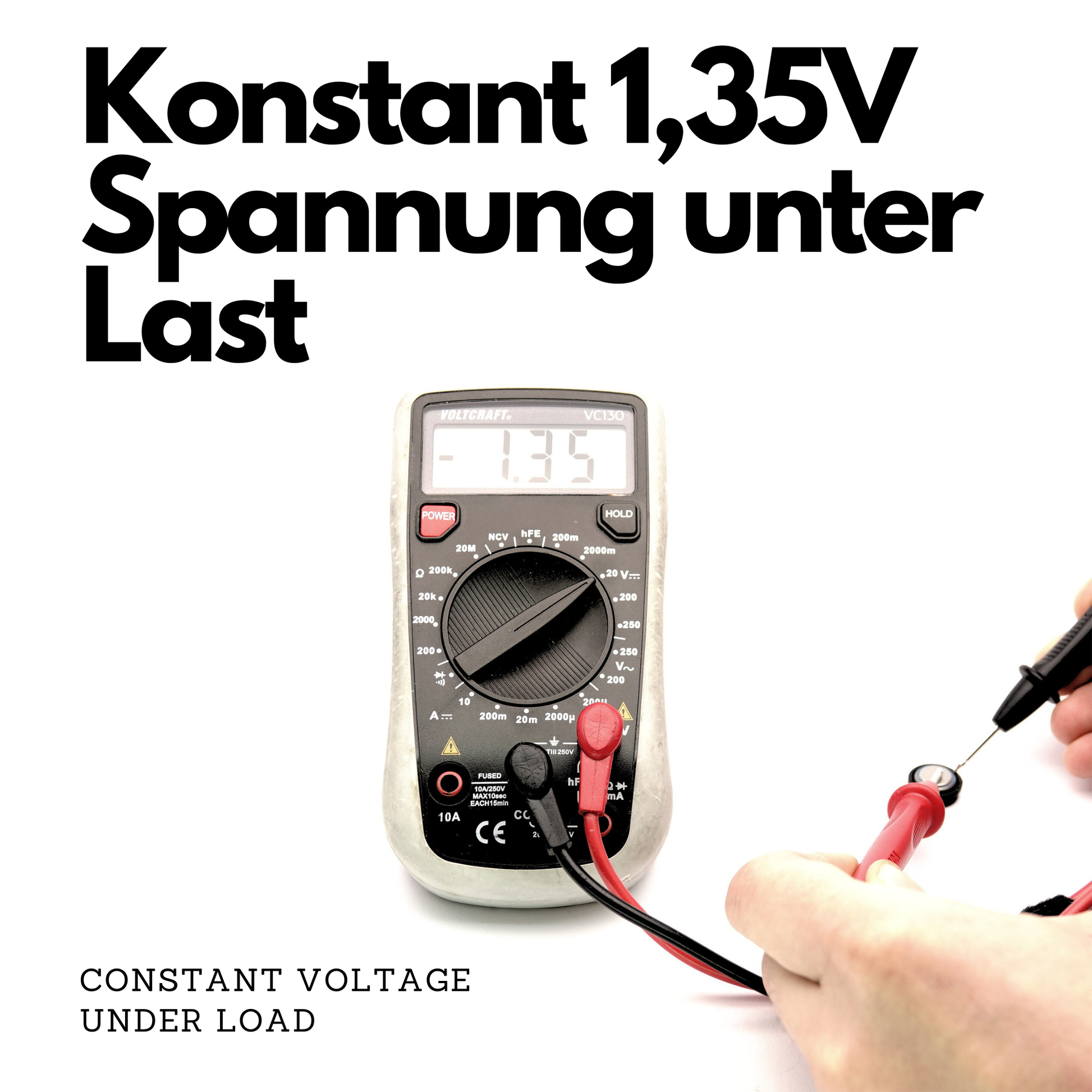 - Verhindert Messfehler, die durch 1,5V Alkaline-Batterien entstehen.