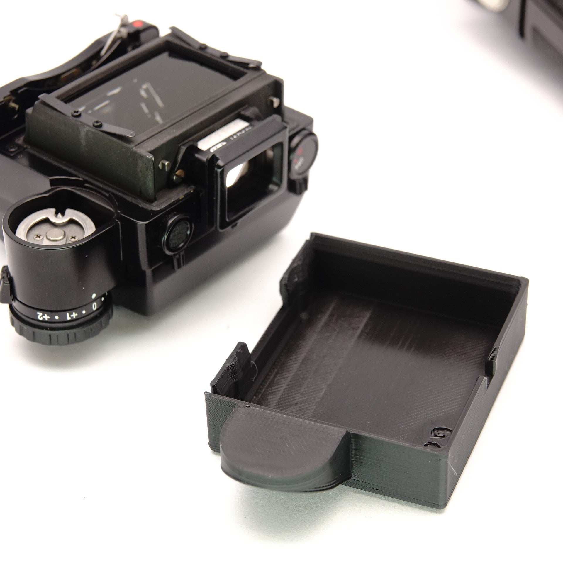La Minolta XM (o XK) è nota come fotocamera professionale modulare. Ma proprio questa caratteristica comporta dei rischi: non appena rimuovi il mirino per sostituirlo o per conservare la macchina, la delicata lastra di messa a fuoco rimane esposta e senza protezione. La nostra copertura per la lastra si aggancia saldamente al posto del mirino e protegge l’interno della fotocamera.