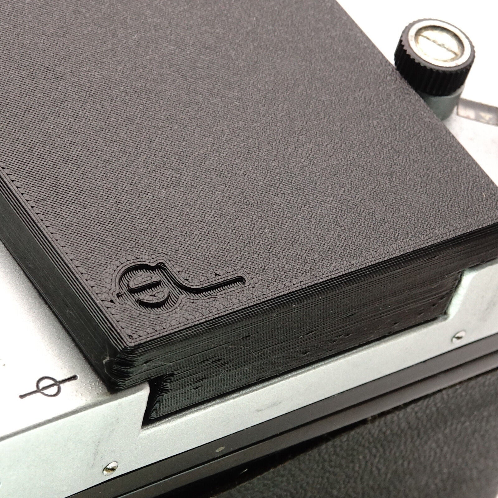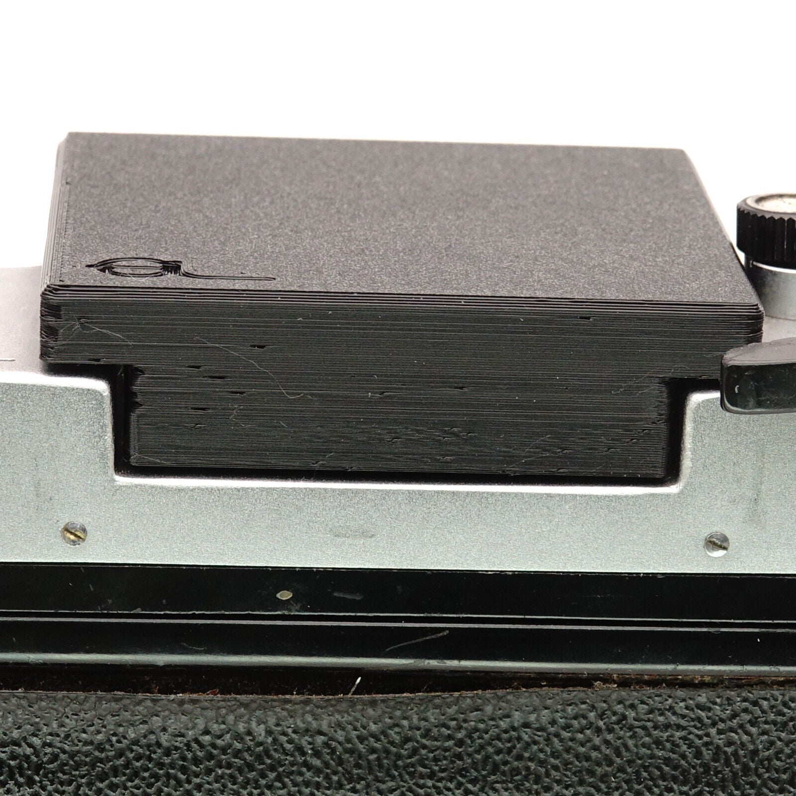 - Dust on the ground glass? When the viewfinder is removed, the sensitive ground glass is exposed. This cover reliably protects it from dirt.