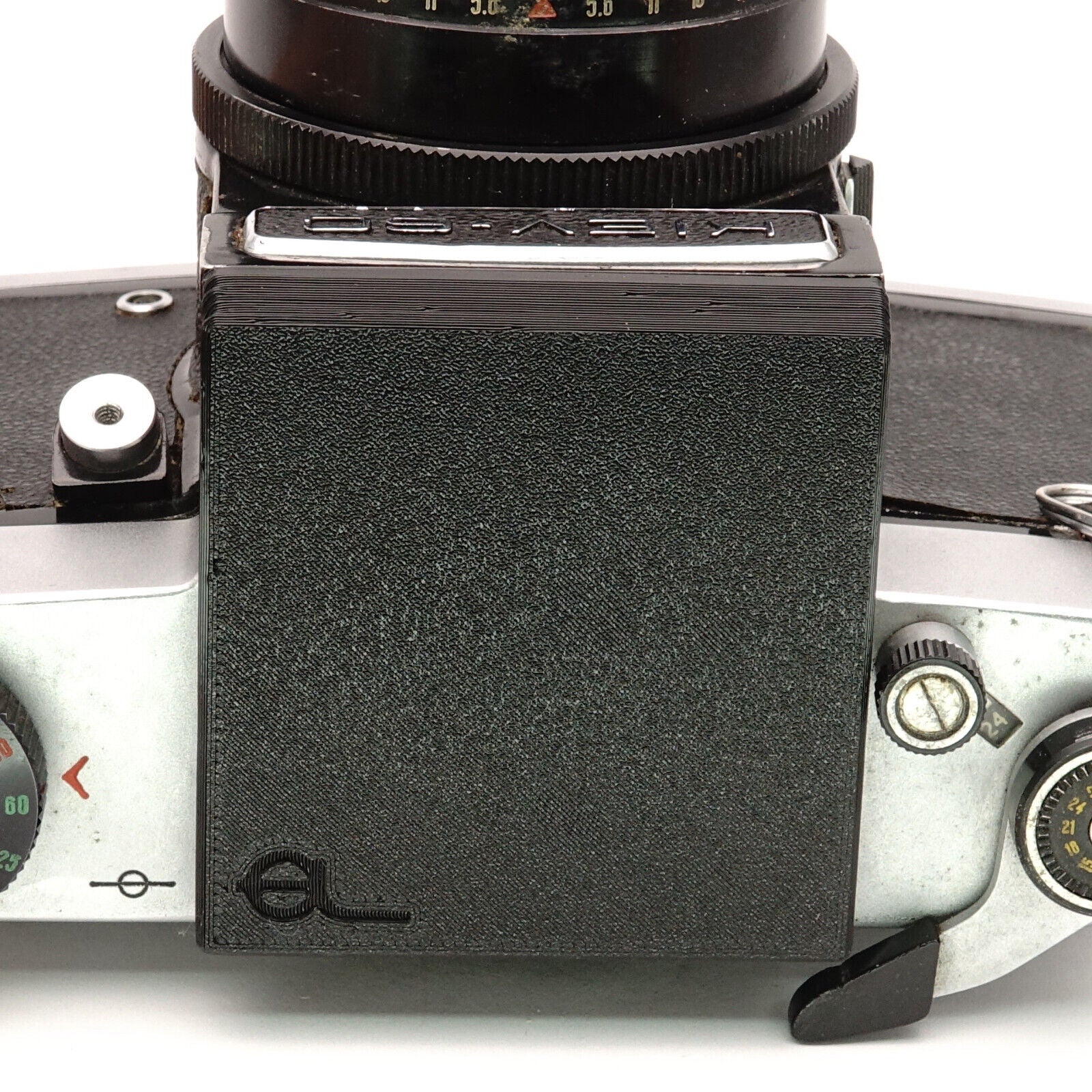 The Kiev 60 and 6C are known for their modular viewfinder system. But as soon as you remove the prism or waist-level finder, the ground glass is unprotected and exposed to environmental influences. This cover was specially designed to cover exactly this area. It fits like a viewfinder and protects the sensitive surface from scratches and dust – ideal for storing or transporting the camera body.